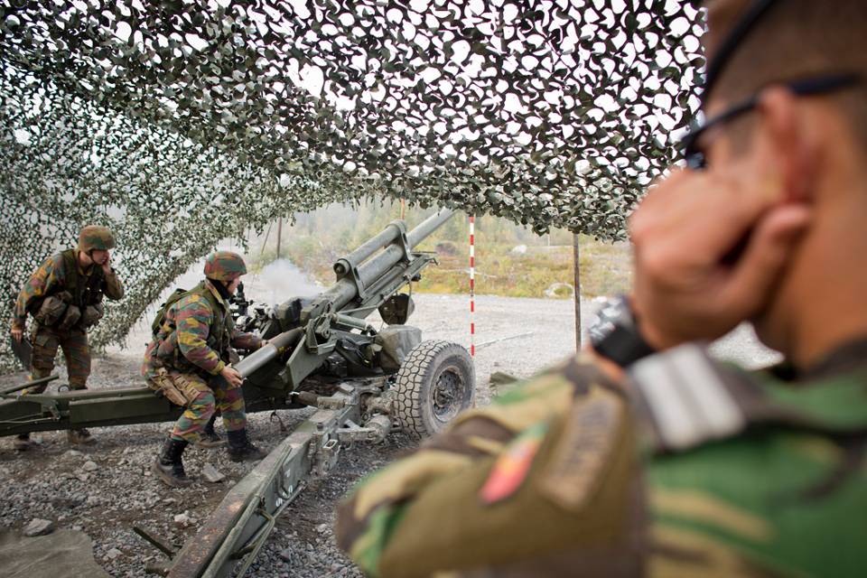 De internationale artillerie-eenheid stoomde zich succesvol klaar voor de NRF. Behalve de 6 Nederlandse pantserhouwitsers (155mm) was het Belgische Bataljon Artillerie uit Brasschaat en Lombardsijde aanwezig met de getrokken LG1 MKII Giats (105mm). “We werken steeds intensiever samen. De Giat is een prima wapen”, weet kapitein Tom van Nunspeet. “Het voordeel is bijvoorbeeld dat je het geschut onder een helikopter kunt vervoeren en het dus snel valt te verplaatsen.