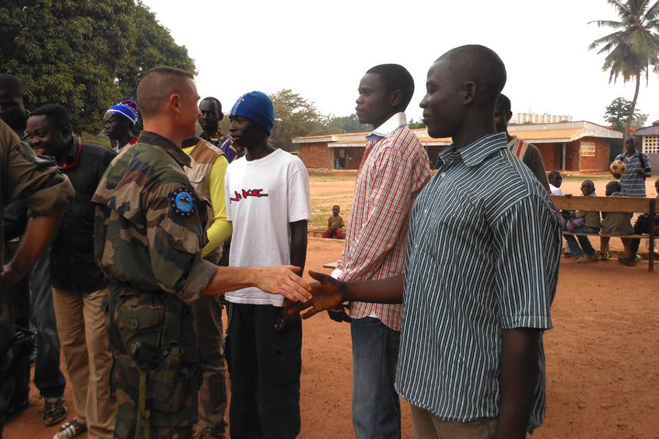 Uiteindelijk zet de staf het om in een bevel voor de commandant. Tijdens mijn verblijf is EUFOR er zeker in geslaagd om het geweld in Bangui terug te dringen. Alleen al de aanwezigheid van de EU-militairen leek te helpen. We deden ons werk onder primitieve omstandigheden. Bij aankomst was er nog geen hoofdkwartier opgezet. We hadden niet eens bureaus om aan te werken.
