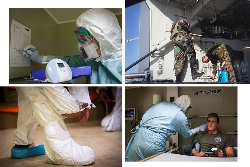 Het landmachtpersoneel speelt een belangrijke rol. Samen met de medische dienst van de marine zorgt het ervoor dat het risico om besmetting aan boord te krijgen geminimaliseerd wordt. Als de Karel Doorman in een Afrikaanse haven aanlegt, staan de genezeriken op scherp. Iedereen die het schip op wil, mag pas na grondige checks aan boord... of juist niet. In het uiterste geval kan iemand op het JSS in quarantaine worden verpleegd. Hoe het voelt om als landmachter geen vaste grond onder de voeten te hebben? Het verhaal van 2 AMV’ers met zeebenen.