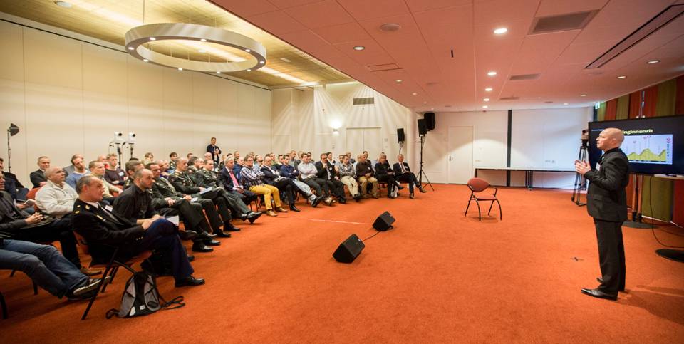 Rietjens weet waarover hij praat. Want naast zijn baan bij het KCT werkt hij voor de professionele wielerploeg Team LottoNL-Jumbo (voorheen Belkin, red.). Hierover gaf de fysioloog 8 januari een korte lezing op het symposium ‘Grensverleggen… is logisch’, dat werd georganiseerd in het kader van het 200-jarige jubileum van de Koninklijke Landmacht (zie kader). Een volle zaal - met onder de aanwezigen Ridder Militaire Willems-Orde majoor Gijs Tuinman en Commandant Landstrijdkrachten luitenant-generaal Mart de Kruif - luisterde naar een verhaal over afzien in de Tour de France.