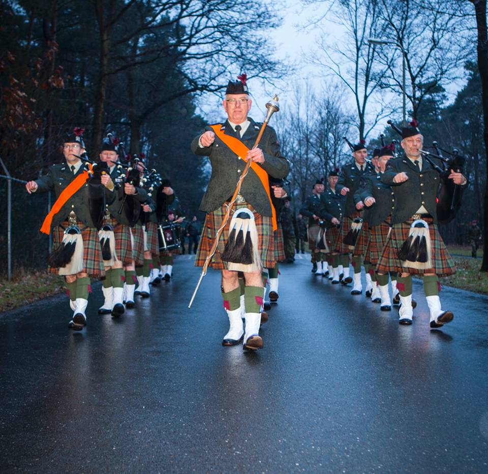 Van die laatste, slopende meters naar de Oranjekazerne zullen ze zich maar weinig herinneren. Maar wat bij blijft zijn de opzwepende klanken van de doedelzak. Traditioneel worden aspirant-luchtmobielers bij binnenkomst begeleid door De Dutch Military Pipes and Drums, ook wel bekend als de ‘Falcon Guards’. Wie zijn deze mannen in hun Schotse kilt?