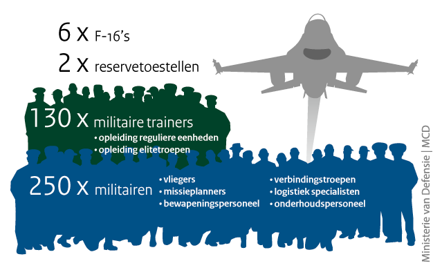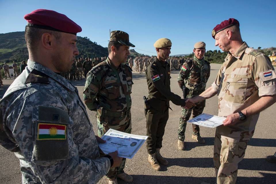 Ruim 130 militairen verblijven momenteel in Irak voor het opleiden van de Peshmerga en de Iraakse strijdkrachten. Inmiddels hebben 8 Koerdische pelotons de infanterietraining succesvol afgerond. De helft hiervan is opgeleid door Nederlandse instructeurs. Volgens luitenant-kolonel Harm van der Have, Senior National Representative (SNR) in Irak, zijn de strijders dapper, maar missen zij essentiële kennis voor hedendaagse oorlogsvoering. “Dat gaat van het optreden in verstedelijkt gebied tot het onderkennen van geïmproviseerde explosieven (IED’s)”, vertelt Van der Have. “Op onze trainingscentra leren de cursisten hoe zij in de meest voorkomende oorlogssituaties moeten overleven.”