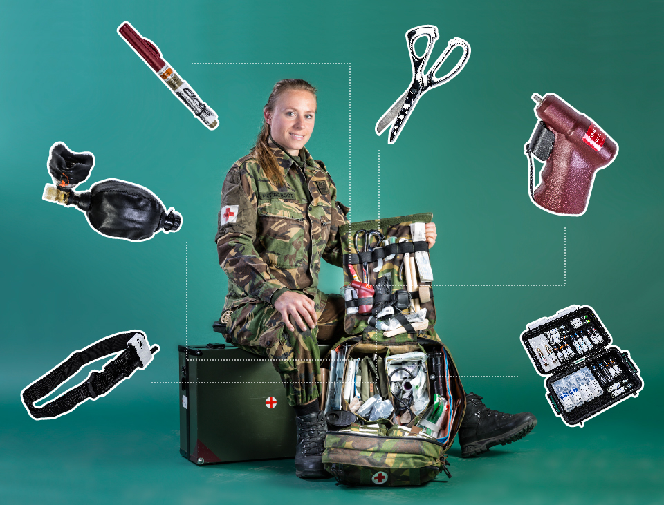 Elke specialist heeft zijn eigen uitrusting. Weet jij wat je collega draagt in het veld? Welke ‘gereedschappen’ zijn onmisbaar? Maandelijks vertelt een landmachter over zijn vak, drijfveren en de materialen die hij tijdens zijn werk nodig heeft. Aflevering 1: de Algemeen Militair Verpleegkundige (AMV’er).
