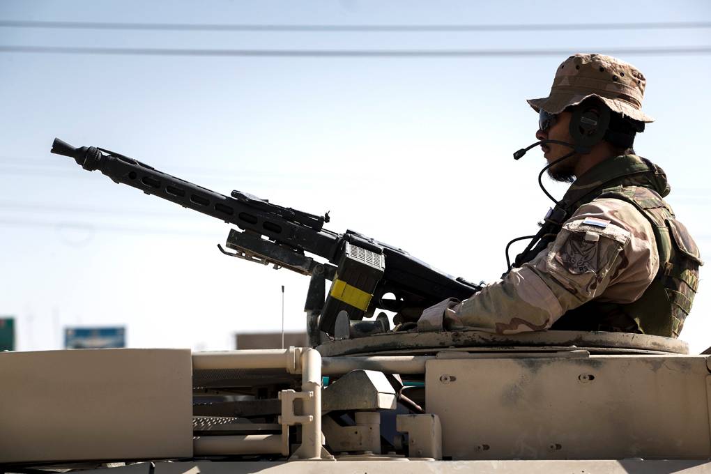 “Het grootste verschil met mijn eerdere missies is dat ik hier, als groepscommandant van de ‘Guardian Angels’, echt een beveiligende rol heb. Daarnaast werken we als force protection veel samen met andere nationaliteiten. Soms is het lastig communiceren. Het Engels van buitenlandse collega’s laat wel eens te wensen over. Dat is leerzaam, maar soms ook frustrerend. Het kwartje valt voor mij nu wel; we hebben in ons leger de zaken (qua materieel en taalvaardigheid, red.) goed voor elkaar. Communicatie binnen het peloton loopt gesmeerd. De grootste uitdaging tijdens deze missie is scherp blijven. Omdat er nog niets is gebeurd en we vaak dezelfde locaties aan doen, bestaat het gevaar laks te worden. Daar moet je voor waken. We moeten goed blijven opletten en onze ogen open houden voor afwijkend of opvallend gedrag.”