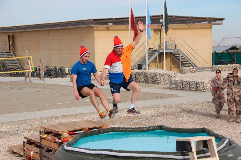 In het Midden-Oosten gingen Nederlandse militairen het water in voor een nieuwjaarsduik. Dat gebeurde ook in Afghanistan en Mali. Vanuit de Malinese steden Bamako en Gao zorgen militairen voor stabiliteit door inlichtingen te verzamelen voor de Verenigde Naties. Het is met 450 militairen de grootste Nederlandse missie in het buitenland.