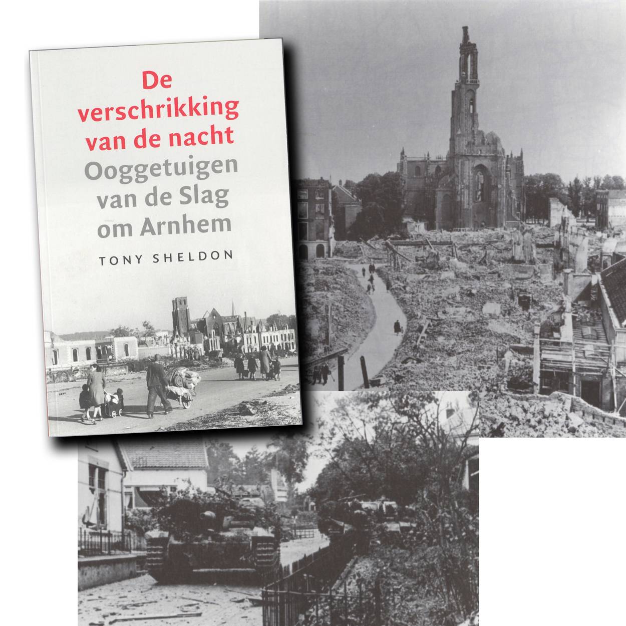 De Britse historicus Tony Sheldon interviewde tientallen overlevenden van de Slag om Arnhem in september 1944. Burgers die letterlijk midden in de oorlog terechtkwamen na de Britse en Poolse landingen bij de Gelderse hoofdstad. Het verhaal van deze ooggetuigen vatte hij samen in een 350 pagina’s tellende dikke pil. Veel tekst, maar wél een indringend verhaal dat de moeite waard is. Je snapt meteen waarom de Slag om Arnhem 70 jaar na dato nog steeds zo leeft bij niet alleen veteranen en militairen, maar ook in de burgersamenleving. De Nederlandse vertaling verschijnt half februari bij uitgeverij Kosmos Uitgevers. ISBN-nummer 9789401903950. De prijs is €22,50.