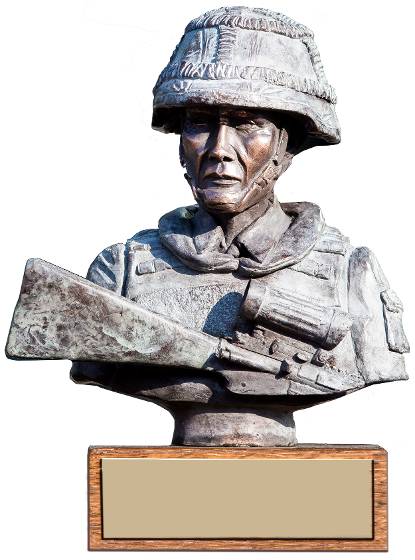 De namen van de 9 militairen die de sculptuur kregen: sgt b.d. Aarnoud Vogelaar, kap Nanne Streekstra, maj Larry Hamers, kap Dennis Schotmeijer, kap Ivor Wiltenburg, sm Frank van Zaane, wmr1 Steven Kramer, wmr1 Harold Fränkel, kap Jakob Feenstra.
