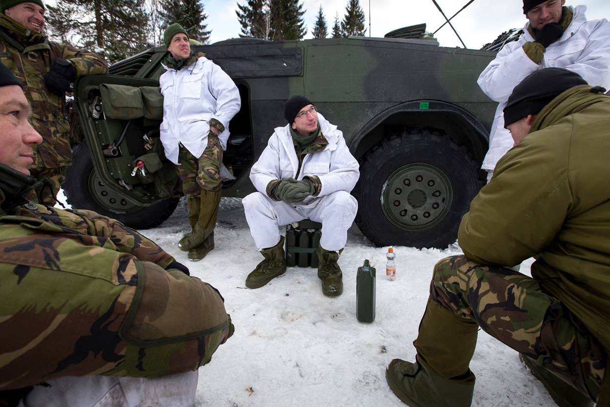 Op de website staat het niet met zoveel woorden. Maar Cold Response – editie 2016 – is vooral een signaal niet aan de achterdeur van het NAVO-verdedigingsgebied te morrelen. Met een massale presentie op de noordflank brengt het bondgenootschap die boodschap helder over. Herleven oude tijden? “De Russen hebben hun belangstelling voor grote NAVO-oefeningen nooit onder stoelen of banken gestoken”, begint majoor Laurens Reinders. Vanwege sterke vermoedens over Russische nieuwsgierigheid in het Hoge Noorden, wordt alle deelnemers met klem verzocht verdachte figuren en dito voertuigen in het manoeuvregebied meteen te rapporteren. “Op spionage zijn de Noren ronduit fel”, aldus de commandant 43 Brigade Verkenningseskadron (43BVE).