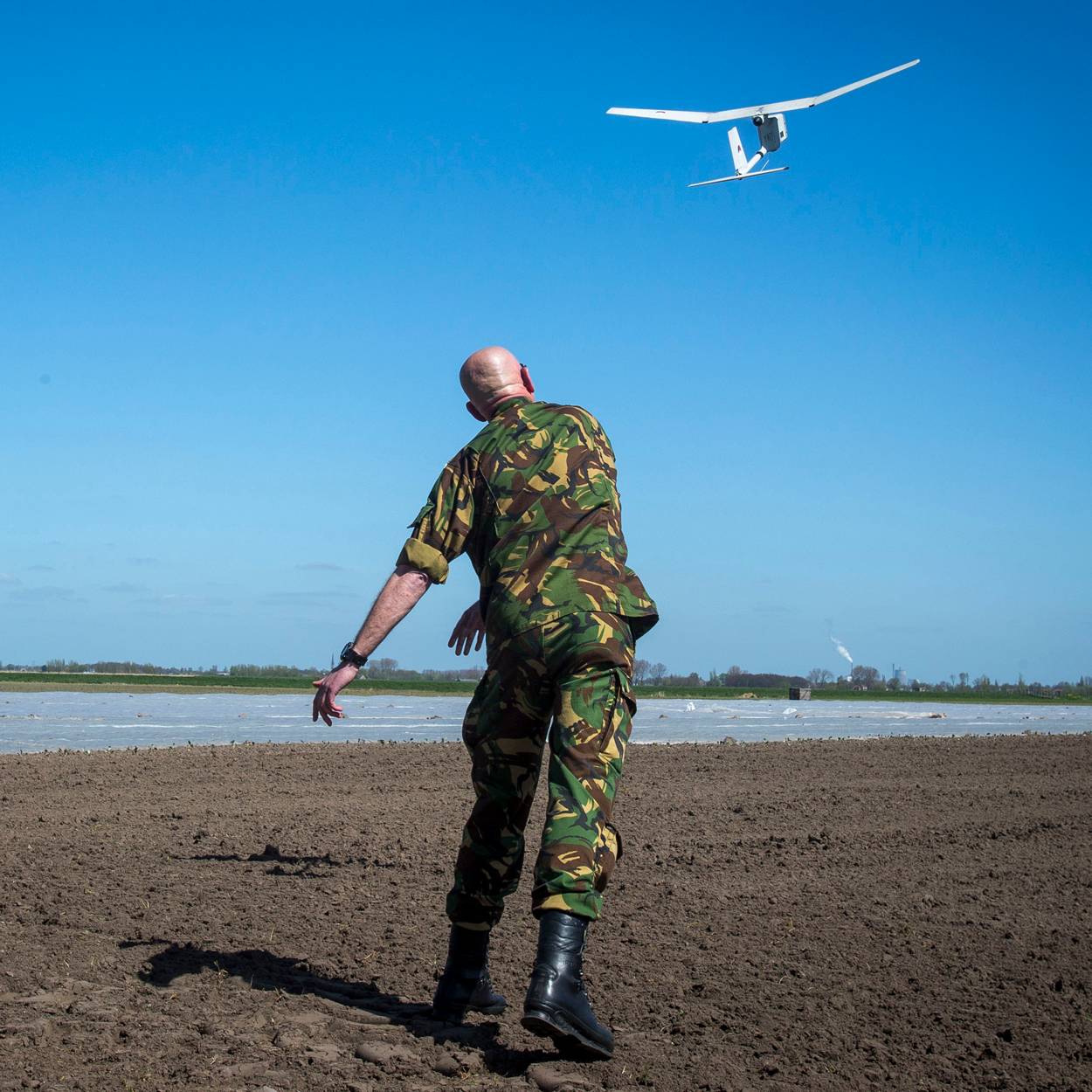 Wielrenner Aad Hoppenbrouwers heeft er zijn dagelijkse trainingsrondje langs de oevers van de rivier de Mark graag even voor onderbroken. “Dit zie je niet elke dag!”, doelend op het gekrioel van mens en materieel van zowel Waterschap als Defensie. Hij heeft gelijk; de jaarlijkse oefening Wake Up richt zich dit keer op een hoogwater-scenario in het stroomgebied van de Mark, even ten noorden van Breda.