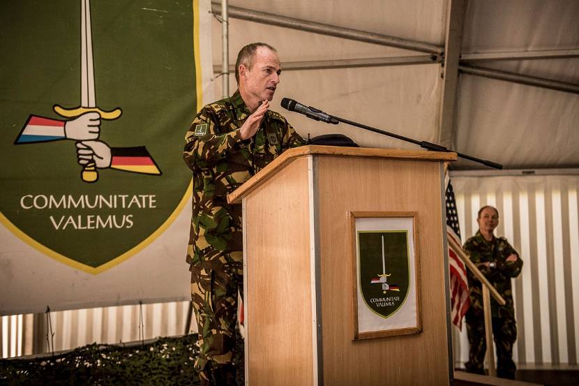 “Samen sterk en klaar voor operaties omschrijven deze eenheid het best”, zei Van der Laan in zijn eerste toespraak als korpscommandant. “We staan klaar als we worden opgeroepen. Jullie zijn een professioneel team en samen met jullie kan ik elke taak aan.” Hij keek dan ook direct vooruit. De generaal kon meteen aan de slag tijdens de oefening Truthful Sword in Wildflecken. Dit was de eerste stap ter voorbereiding op het optreden van 1 GNC als NATO Joint Headquarters vanaf medio 2017.