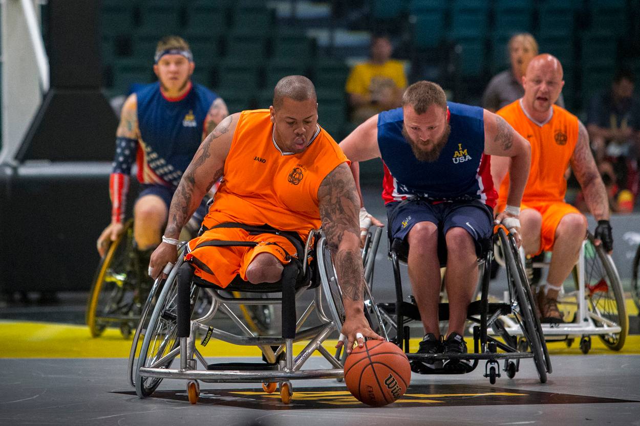 Groot, groter, grootst. Laat dat maar over aan de Amerikanen. Van 6 tot en met 12 mei was het ESPN-sportcomplex in Orlando een imposant eerbetoon aan de gewonde militair. Inclusief cheerleaders. Nederland vaardigde 30 (oud-) militairen af, onder wie 22 landmachters. Twee vertellen hier hun Invictus-verhaal.