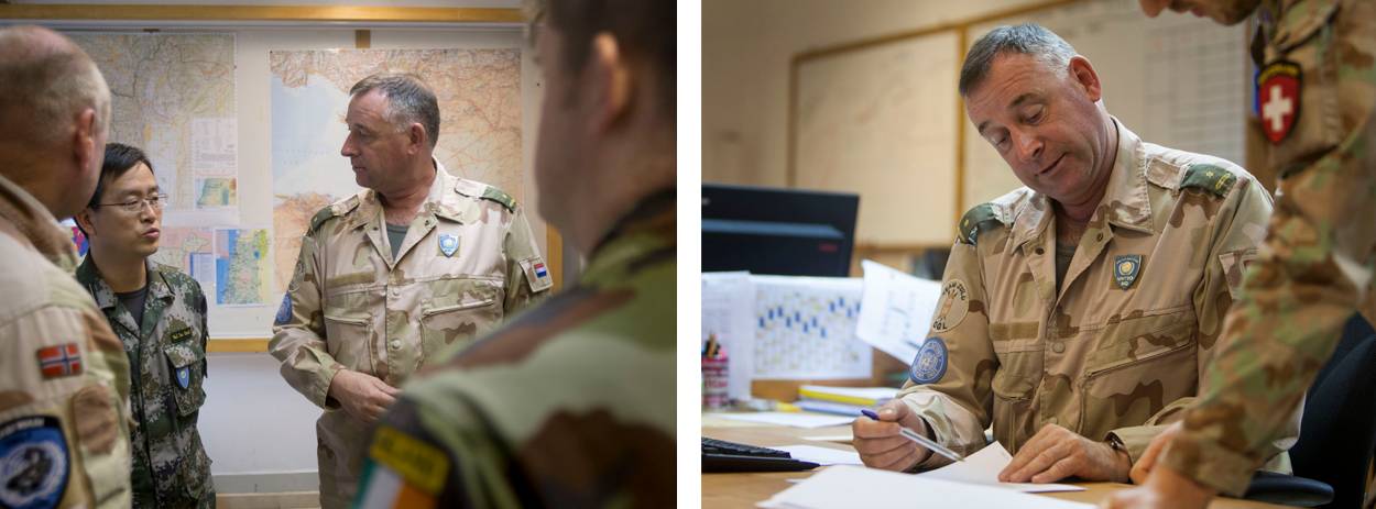 “Het operatiegebied van UNDOF ligt in het noorden van Israël, op de Golan Hoogvlakte. Tot 2014 was het een redelijk rustige missie. Toen gijzelden rebellen in Syrië ongeveer 3 weken lang 40 UNDOF-militairen. Na hun bevrijding verhuisde het grootste deel van het hoofdkwartier in Syrië naar Camp Ziouani. Wat overbleef zit nu in Damascus; de Force Commander en enkele stafofficieren, waaronder het hoofd van de liaisons, de andere Nederlandse militair in deze missie.”