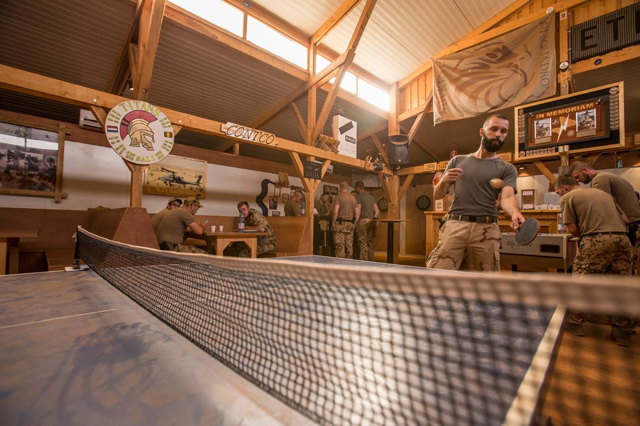 De term ’campingbaas’ is geenszins denigrerend bedoeld, maar dekt simpelweg de lading. De base commandant is een Nederlander. Hij moet – op het oorspronkelijk voor 700 man gebouwde kamp – zorgen dat alle ruimte efficiënt wordt gebruikt. Bovendien zorgt Nederland voor beide landen voor de ‘real life support’, zoals brandstof en voeding.