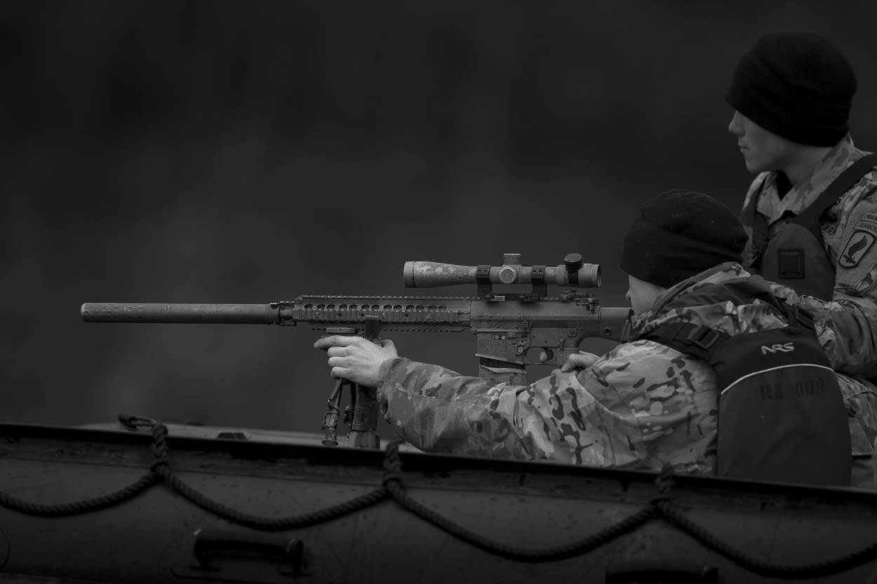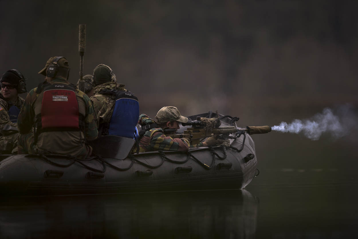 Dat teamcommandant sergeant 1 Mike en de korporaals Mark, Niels, Thomas en Jasper een smile van oor tot oor op hun gezicht hebben, is niet zo vreemd. Als nieuwkomers hebben ze een team van het US Marine Corps, van het Britse Royal Anglia Infantry Regiment en vier ploegen van de US Army ingepakt. Equipes met doorgewinterde snipers die bergen ervaring opdeden in onder meer Afghanistan en Irak.