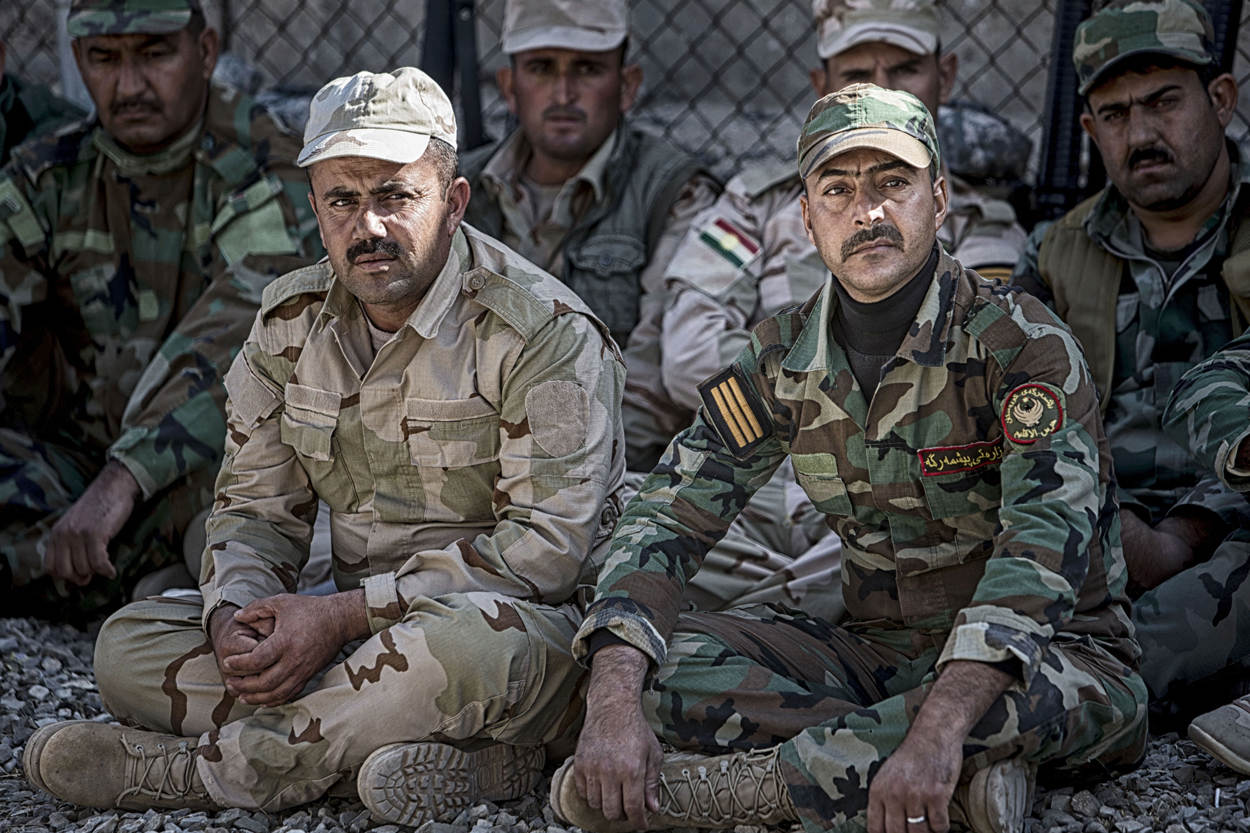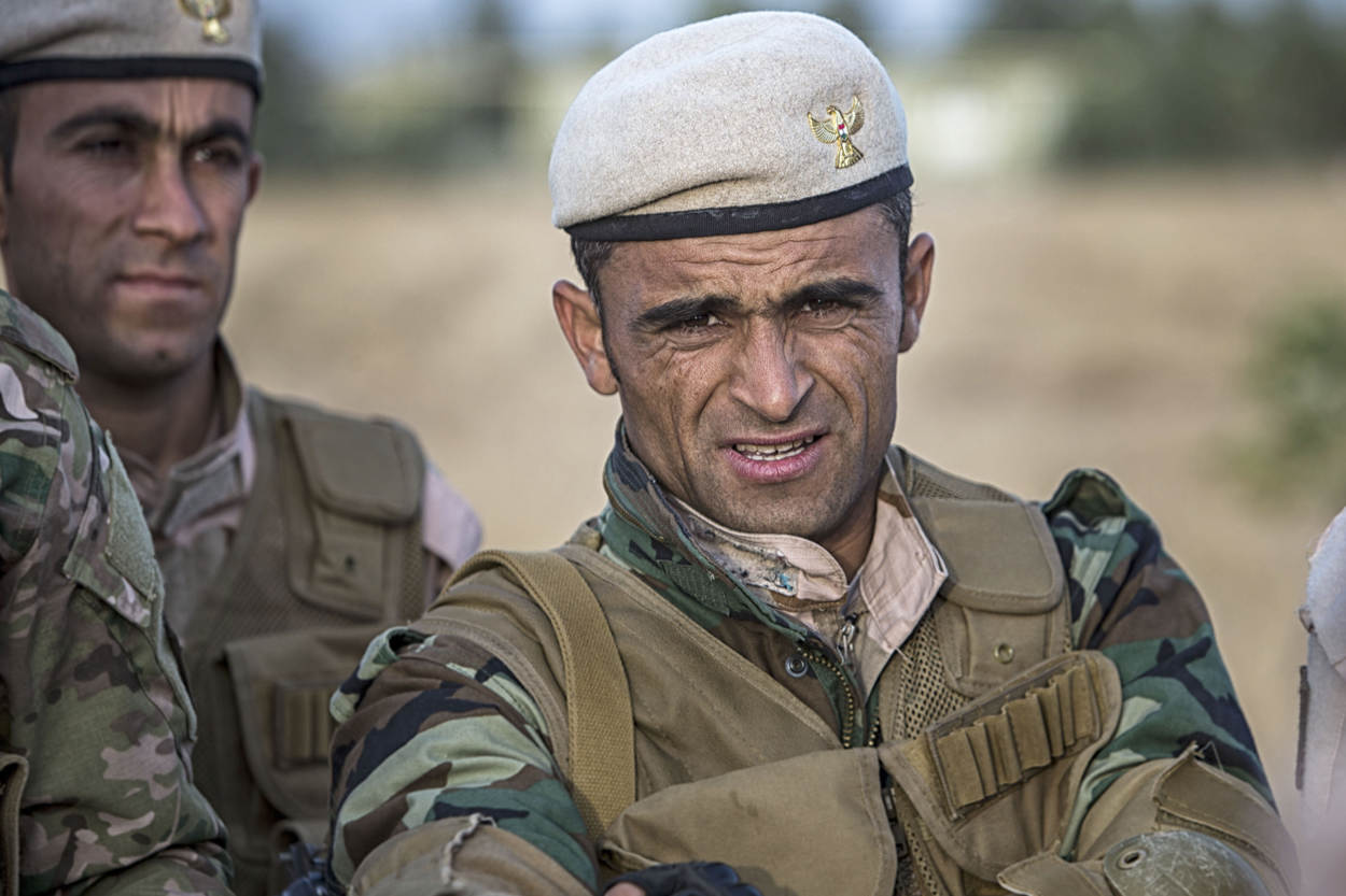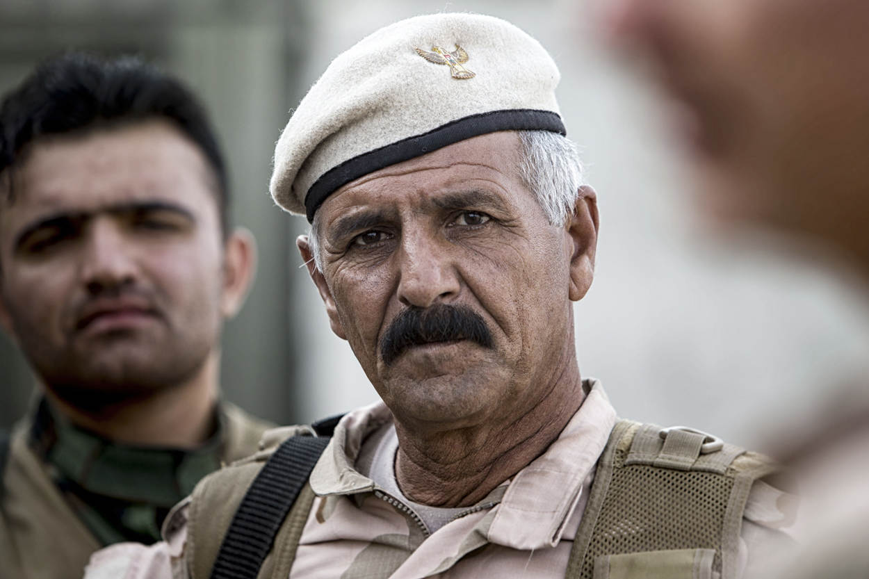 “Of ik bang ben om dood te gaan?” Khalid Muhammad Amin schiet in de lach. De gitzwarte snor op zijn bovenlip doet een dansje en de kraaienpootjes bij zijn ogen lachen mee. De frontlijn heeft weinig geheimen voor deze sergeant-majoor van de Peshmerga; al sinds 1992 vecht hij voor het roemruchte Koerdische strijdersgilde.
