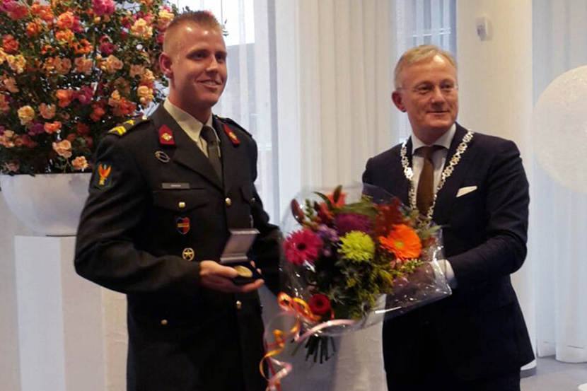 Korporaal-1 Bart Snellink van 220 Transportcompagnie is medio november verrast met de bronzen legpenning van het Carnegie Heldenfonds, omdat hij een automobilist het leven heeft gered.