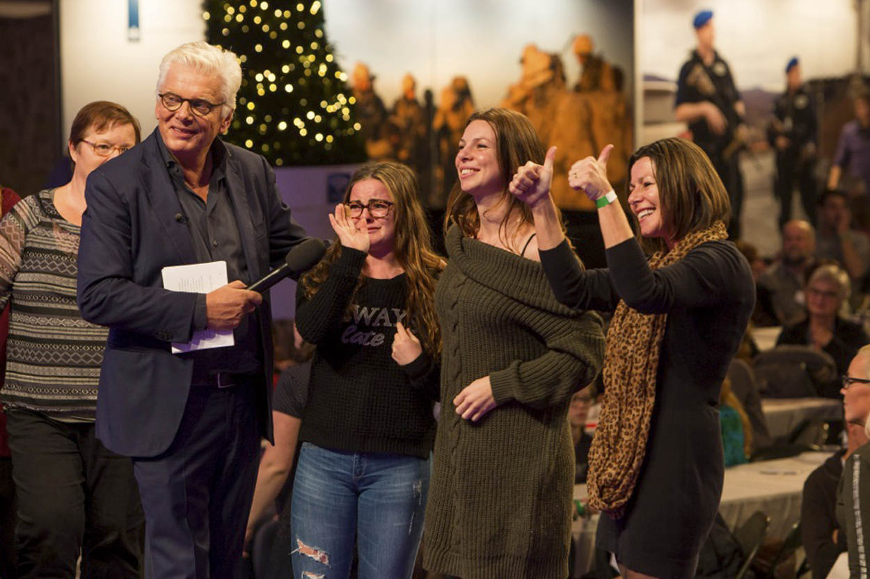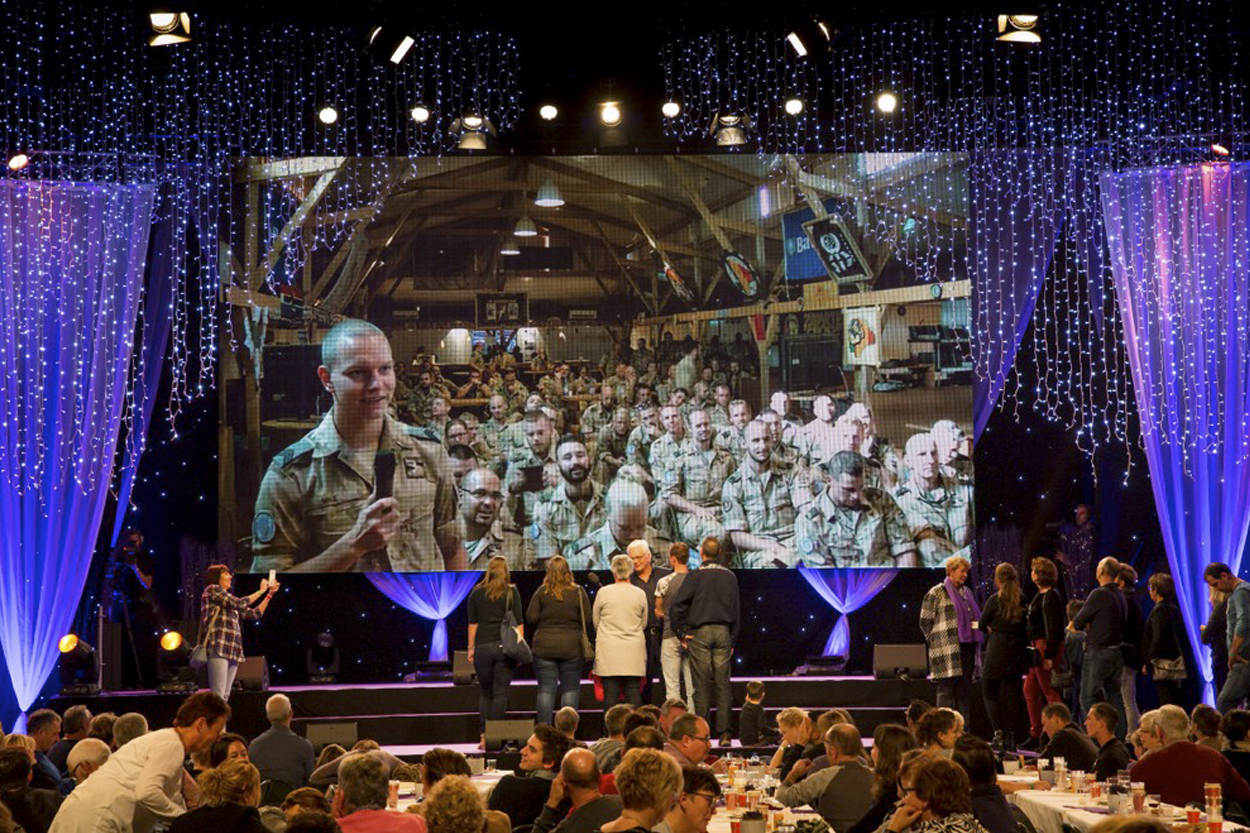 Vooral tijdens live-verbindingen met militairen in 5 missiegebieden vloeien tranen rijkelijk. “Papa! Ik heb de oranje band gehaald met judo en vorige week gewonnen met zwemmen”. Een klein meisje praat zo snel tegen haar zwaaiende vader op het scherm, dat ze bijna struikelt over haar eigen woorden.