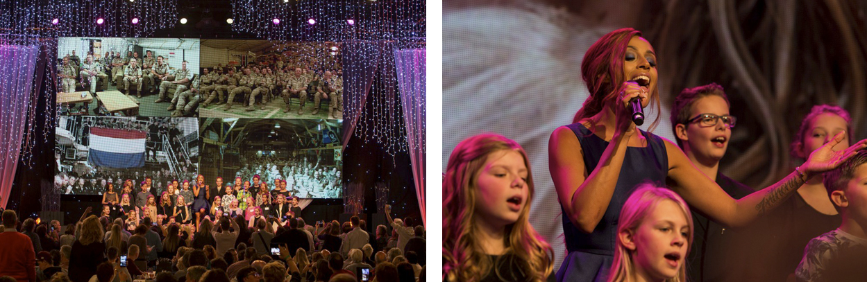 Speciaal voor uitgezonden vaders en moeders schreef zangeres Glennis Grace met wat kinderen het liedje ’Bij mij’. Op de muziek van het nummer ‘Always’ zingt ze met de kleintjes over het grote gemis, het denken aan en het stoere werk dat hun ouders zo ver van huis doen. Wanneer de muziek begint te spelen en de eerste woorden zijn gezongen, ontsnappen tranen bij aanwezigen.