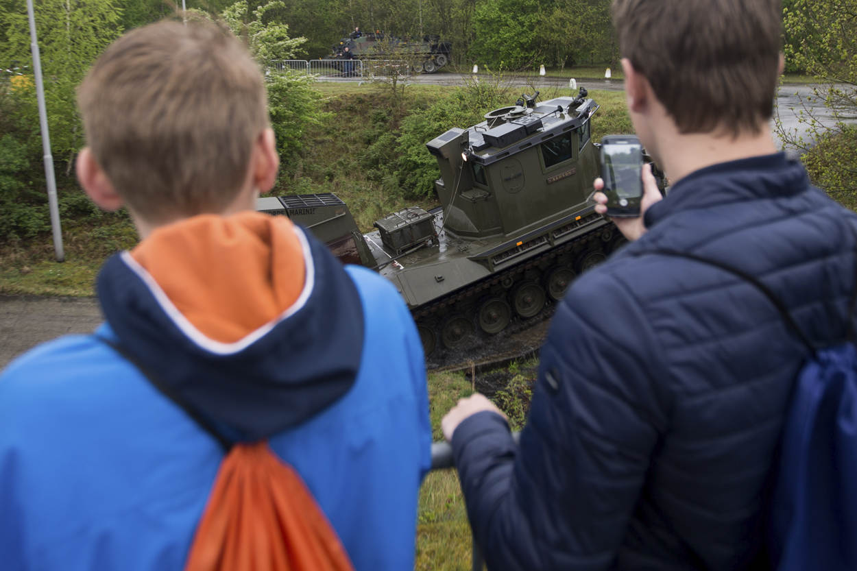 Beeld van Defensie na de open dag: “Het is veel uitgebreider dan ik dacht. Dat ze ook onderhoud aan voertuigen moeten doen, snapte ik natuurlijk wel. Dat is logisch. Maar dat het zo gecompliceerd is, wist ik niet. Er zijn hier zoveel afdelingen.”