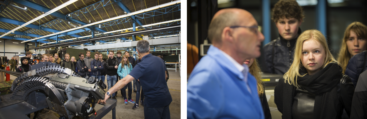 “Yo gast, dit is een Mercedes Benz!” De 17-jarige Wietse wijst naar de zilveren ster op het stuur van een terreinwagen in de onderhoudsloods van het Materieellogistiek Commando (MatlogCo). Zijn klasgenoten staan iets verderop een uit elkaar gehaalde CV90 te bekijken. De tieners vormen een groot contrast met de werknemers in de technische werkplaats in Leusden. Gedreven mannen, maar ook allemaal grijs. En daar moet verandering in komen.