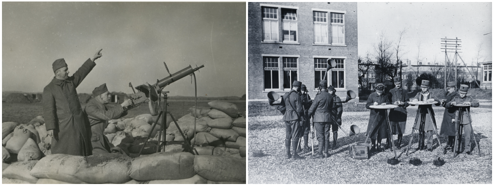 Een mitrailleur, een stel haviksogen en vooral een stijve nek. Dat waren 100 jaar geleden enkele kenmerken van de Nederlandse militair die in dienst was bij de luchtafweer. Met de mitrailleur moesten vliegtuigen uit de lucht worden geknald, dat is wel duidelijk. Maar bij een gebrek aan radar waren de ogen, en ja ook oren, belangrijke ‘wapens’. En de stijve nek, die kwam van het turen naar de hemel.