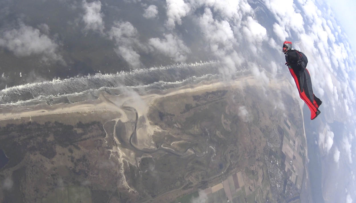 Armen strak op de rug, benen gesloten. Suizend door de lucht, recht naar beneden. 2 seconden wachten. Bidden voor een goede opening. Armen uit elkaar, benen spreiden. En vlieg! Sergeant-majoor Sebas kan de drill dromen. Ruim 20 keer sprong hij op deze manier uit een vliegtuig. Geen gewone parachutesprong met de bekende loodrechte vrije val, maar een duik vastgeketend in een soort dwangbuis, oftewel een ‘wingsuit’.