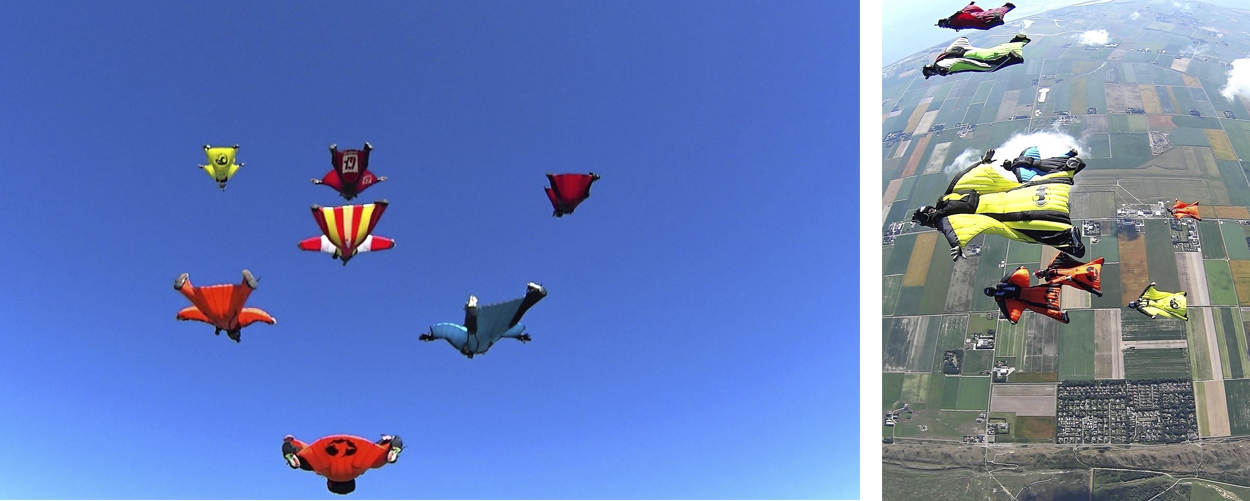 Jorn Koekoek, oud-luchtmobieler en nu als grafisch vormgever werkzaam bij het Mediacentrum Defensie (MCD) is ook een wingsuiter. Hij monteerde deze video, waarin hij, Sebas en luchtmachtcollega Ines Heijs uit een vliegtuig springen, uiteraard met wingsuit.