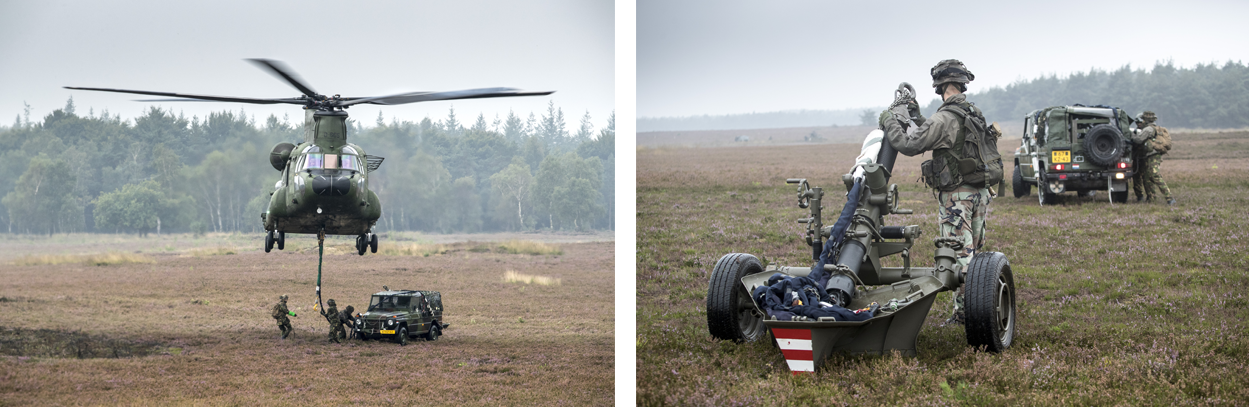 Vorige week beleefde de Charliebatterij een mijlpaal op het Artillerie Schietkamp in ‘t Harde: zelfstandig een heli-inzet uitvoeren in combinatie met het uitbrengen van grondgebonden vuursteun. Voorheen zorgden de eenheden die vuursteun aanvroegen – LMB, KCT, Marns – voor alle randvoorwaarden bij een helikopteroperatie. Maar nu zijn de mortieristen opgeleid om daar zelf in te voorzien. De hele batterij kreeg een Basis Helikopter Training. Ook zijn mortieristen opgeleid tot Rigger Marshaller, Landing Point Finder, Landing Point Commander of Helicopter Handling Instructor.