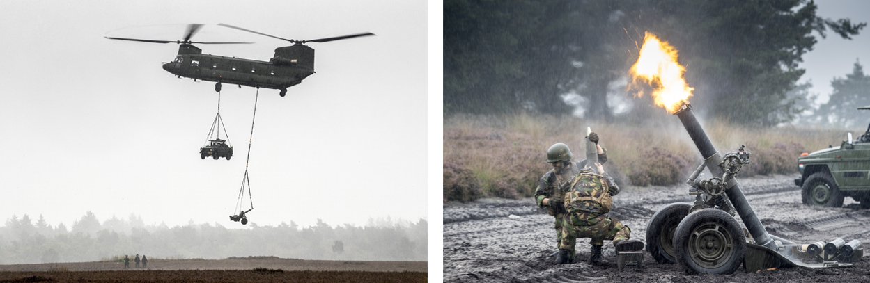 “Yes!” Kapitein Luuk van het VuursteunCommando balt enthousiast zijn rechtervuist. “Ik ben zo blij dat ik heli's zie én tegelijkertijd de schoten hoor.” Links van hem knallen 120 mm-mortiergranaten de lucht in, terwijl rechts twee Chinooks landen met meer mensen en materiaal. “Hier heb ik 1,5 jaar naartoe gewerkt. Het is mooi om te zien dat alle onderdelen nu bij elkaar komen tot een geheel.”