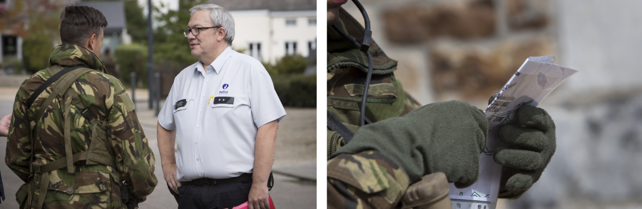Van Mali naar België; in geografisch opzicht een grote stap, maar in taalkundig opzicht geen verrassende. Alderden legt uit: “In de Belgische Ardennen oefenen zorgt voor 2 grote voordelen. Ten eerste spreekt men hier Frans waardoor werken met een tolk vereist is. Dat is ook zo in Mali. Communiceren via een tolk vraagt om ervaring, omdat men geneigd is via de tolk te praten in plaats van direct tegen de gesprekspartner. Op deze manier informatie proberen te halen bij de Frans sprekende bevolking is zeer leerzaam. Ten tweede vormen de Ardennen een bijzondere locatie om te trainen. Het terrein wijkt af van wat we gewend zijn in Nederland en dat prikkelt de kaartleesvaardigheid en het tactisch inzicht.”