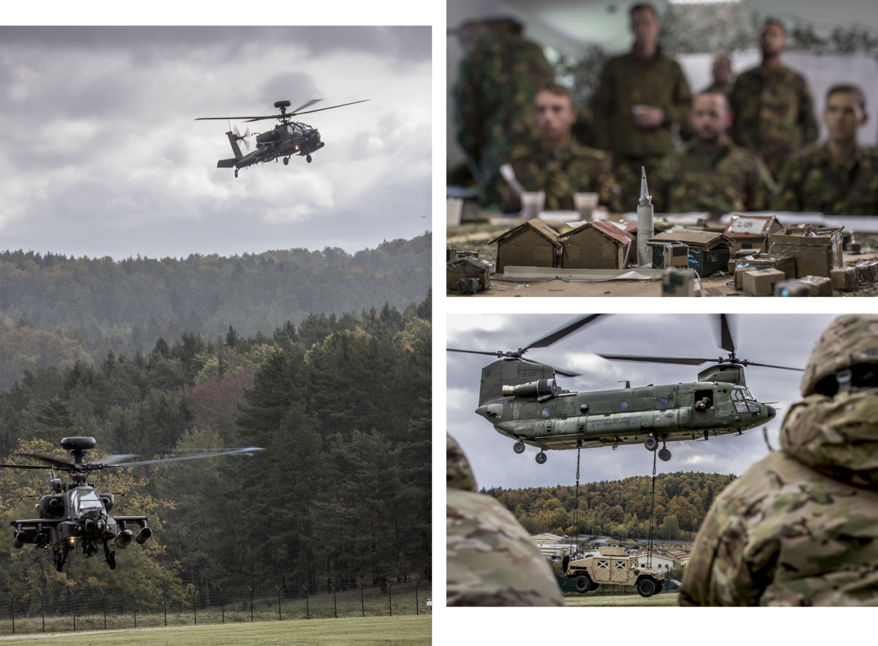 Oorspronkelijk zou een Duitse paracompagnie met 11 Luchtmobiele Brigade oefenen. Wanneer die afzegt, haakt als vervanger de Eagle-compagnie aan. Dit onderdeel van 13 Lichte Brigade staat te trappelen. Neefs: “Als lichte infanterie-eenheid werken wij ‘gemotoriseerd’. Dat wil zeggen dat wij veelal ‘te voet’ vechten, met steun van pantserwielvoertuigen en zware wapens. Door mee te doen aan een luchtmobiele operatie – een vak apart – verbreden we onze kennis. Hoe plan je een helikopteroperatie? Hoeveel lading en personeel kunnen mee? Hoe gooi je een plan om als een kist niet kan opstijgen? Hoe stijg je in en uit? Dat gaat overigens niet veel anders dan bij een voertuig. Het is vooral wennen aan die brullende motoren en de downwash van de rotorbladen.”