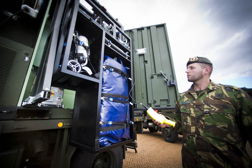 De eenheden zijn daarmee weer compleet. 101 CBRN Verdedigingscompagnie moest 5 jaar geleden de helft van haar zwaardere ontsmettingssystemen overdragen aan de zustercompagnie uit Oirschot. “Beide hebben hun voordelen. Met de lichte kunnen we in nauwe straten snel en adequaat optreden. Voor grotere platforms, zoals grote hoeveelheden voertuigen, is het oude systeem uitstekend geschikt”, aldus commandant Touw.
