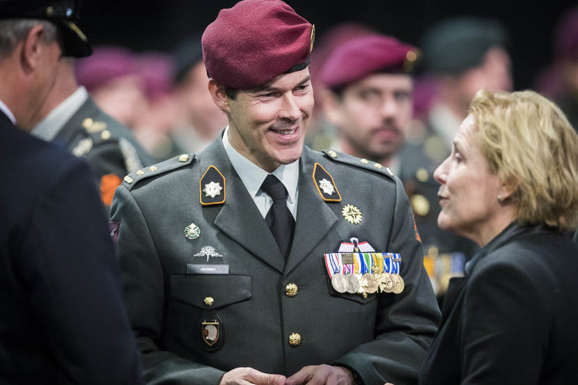 Minister Ank Bijleveld en CDS luitenant-admiraal Rob Bauer speldden de versierselen op. De minister citeerde daarbij militairen die naar hun ervaringen was gevraagd. Zoals eerste luitenant Maureen die in Afghanistan hielp bij het versterken van het Afghaanse veiligheidsapparaat, leger en politie.