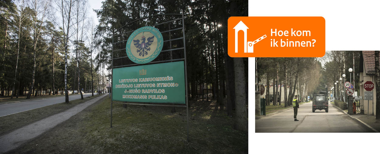 Via de hoofdpoort van de kazerne waar je een half jaar leeft. Tenminste, als je niet in het veld ligt. Je komt alleen langs de Litouwers na vertoon van je Defensiepas. Een groot verschil met je collega’s die in Mali vanuit Camp Castor opereren: de wacht richt hier geen .50 op ieder voertuig dat komt aanrollen.