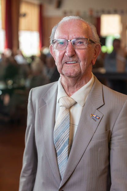 De goedlachse en kwieke veteraan diende van 1948 tot 1950 bij de HvB in Bandoeng. “Een mooie tijd”, blikt hij terug. “Nooit op een kazerne gezeten, we vorderden wel een fijn huisje met z’n allen. Niks te zeuren. Ik heb er na terugkeer altijd uitgebreid over kunnen praten. Weinig nare dingen meegemaakt. Na mijn diensttijd ben ik keurig opgevangen hoor; ik heb veel baat gehad bij mijn rijopleiding. Ik kon na Indië gaan werken als chauffeur bij het ministerie van Landbouw. Dat heb ik 40 jaar volgehouden, veel ministers in de auto gehad. Lardinois, Braks; dat was de laatste. Ik had mijn pensioen zo goed geregeld dat ik de hele wereld over ben gereisd met mijn (inmiddels overleden) echtgenote. Ja, ook een paar keer naar Indonesië.”