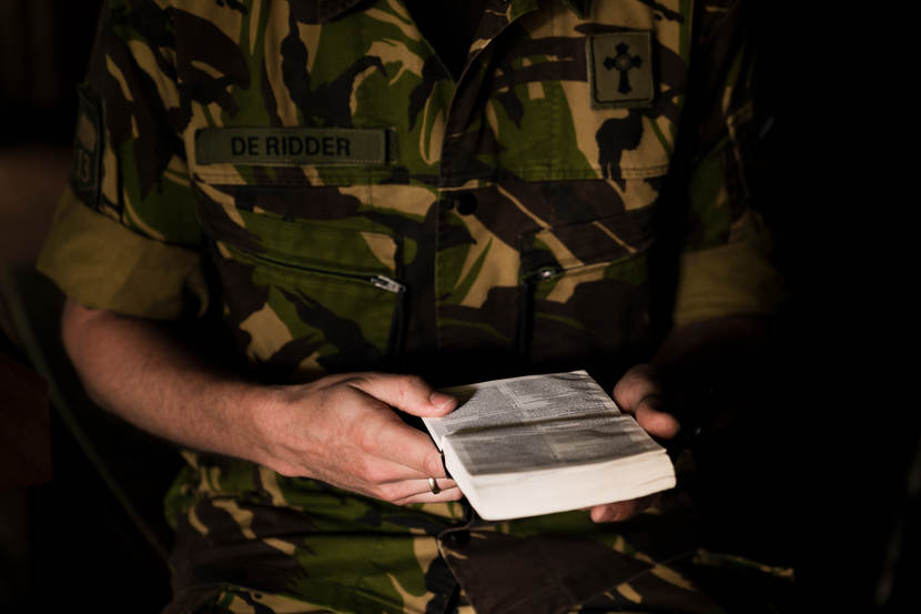 "Nee, het is mijn werk om met mijn identiteit bezig te zijn. In al mijn contacten ben ik ook heel bewust bezig met mijn eigen levensbeschouwing. Aan de andere kant merkte ik wel dat ik tijdens mijn uitzending hetzelfde meemaakte als andere militairen. Focus op je werk, op die hele koker waar de uitzending in zit. Ik moest ervoor waken bewust te blijven leven en niet in een vast riedeltje te vallen. Dat is voor mij net als iedere andere militair een uitdaging. Het is een kunst om je hart te blijven openstellen voor anderen. Maar de beweging om heel dicht bij de mens te zijn, en de flexibiliteit die daarvoor nodig is, zit gelukkig al verweven in de protestantse traditie."
