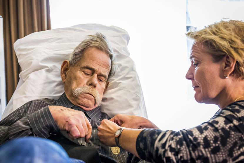 De ernstig zieke luitenant-kolonel b.d. Van Erp heeft vorige maand de Erepenning voor Menslievend Hulpbetoon in brons ontvangen. Hij kreeg die onderscheiding vanwege zijn optreden in 1991 tijdens inzet in Irak.