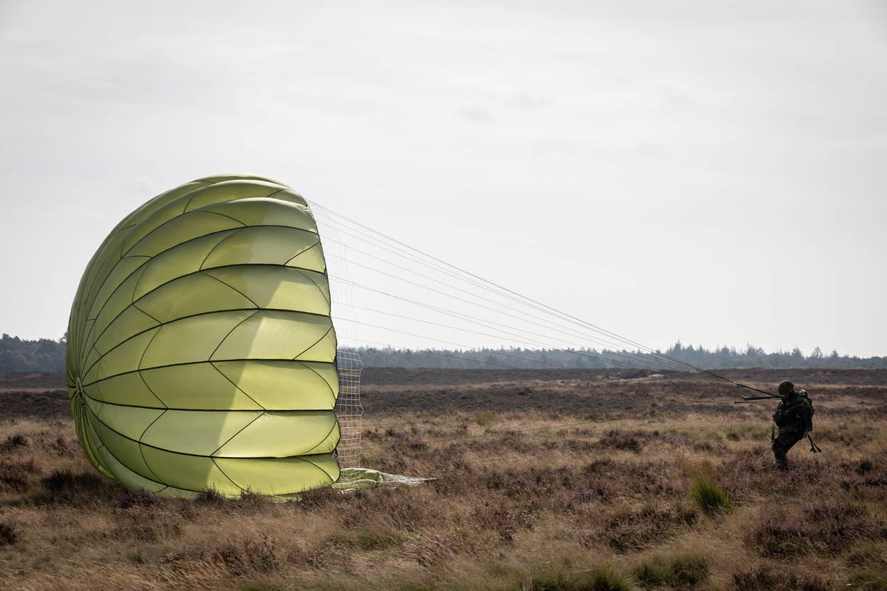 Op de dag zelf rijden de verkenners bij zonsopkomst naar de Ginkelse Heide om met markers de locatie aan te geven. “Elk uur geven we de actuele meteo door aan Eindhoven, vanwaar de kisten opstijgen. Daarnaast beginnen we met de laatste afstemming met de civiele autoriteiten, de KMar en de Nationale Reserve. Zij zetten wegen af en zorgen er samen met ons voor dat er niemand op de dropzone is en er geen drones boven de heide hangen.”