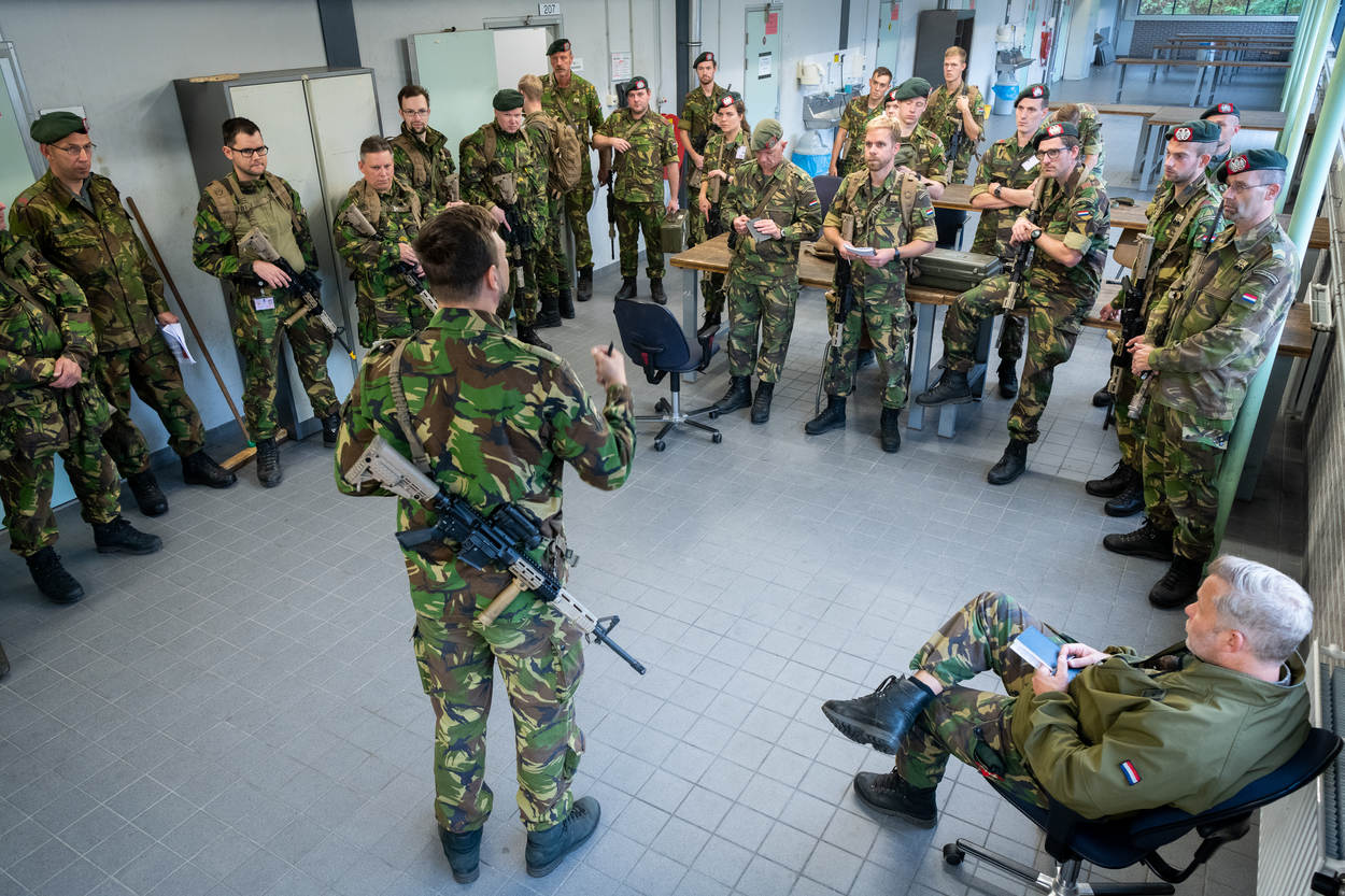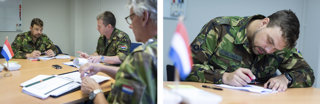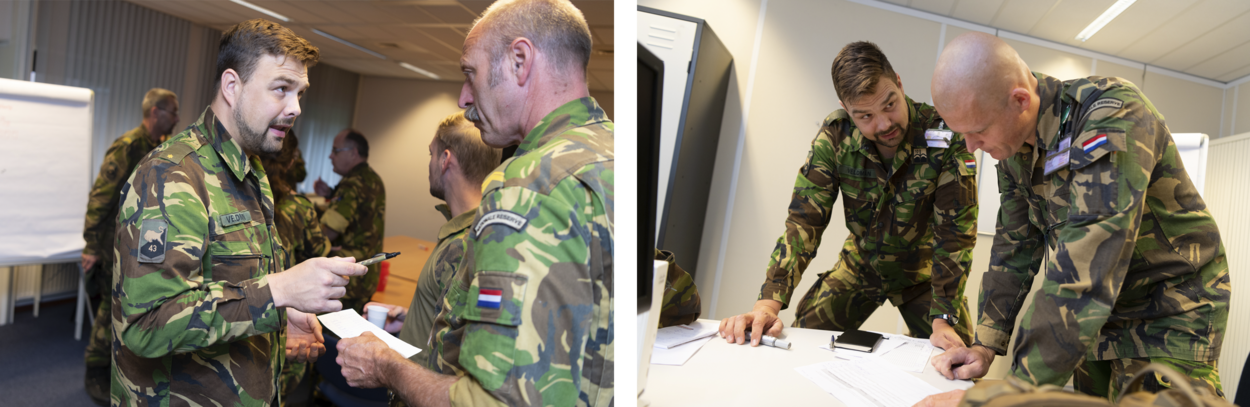 Omdat het een oefening betreft, krijgt Veldman een uur als extra ‘leermoment’. Zijn commandant observeert hem tijdens deze oefening en helpt hem nu de juiste vragen te stellen aan de overste die de bevelsuitgifte doet. Met name over de situatie ter plekke. Inmiddels is duidelijk dat het Natrespeloton naar Leusden moet om het MatlogCo te beveiligen. “Er waren aanwijzingen dat terroristen het complex wilden aanvallen om wapens buit te maken”, licht Veldman toe.