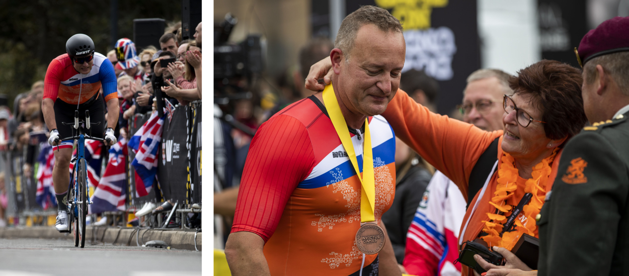 Voormalig sergeant bij 12 Infanteriebataljon Luchtmobiel Edwin de Wolf heeft met deze 4e editie van de Invictus Games een periode in zijn leven afgesloten. 24 jaar geleden stapte hij in Srebrenica op een anti-personeelsmijn, die zijn linkerbeen afrukte. “Ik ben nu 48 en loop dus vanaf nu langer op 1 dan op 2 benen.” De manager op het Militair Revalidatiecentrum in Doorn greep ook nog eens brons bij het wielrennen op zowel de tijdrit als bij het criterium, in een veld met veelal 2-benige pedaleurs. “Dat mijn toenmalige compagniescommandant kolonel Ludy de Vos mij de medaille omhing en mijn moeder er in Sydney bij kon zijn, maakte de cirkel wat mij betreft helemaal rond. Voor mijn moeder is dat ook heel belangrijk, want bijna niemand kan zich er een voorstelling van maken wat zij heeft doorgemaakt toen ik gewond raakte.” De Wolf, die stad en land af reist om zijn bijzondere ervaringen van de Invictus Games te vertellen, is er in 2020 niet meer bij als atleet. Zijn ervaring gaat hij nu gebruiken in het organisatiecomité. “Een bijzonder eervolle uitnodiging voor een bijzonder evenement.”