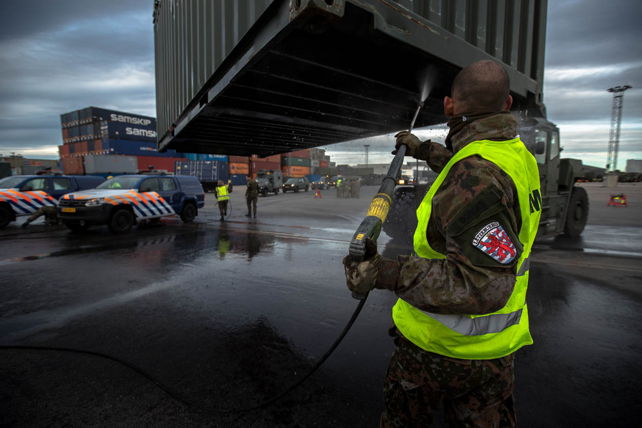 Trident Juncture mag dan in vele opzichten bijzonder zijn, 1 ding is even regulier als elke andere militaire oefening: het belang van goede logistieke lijnen. Een van de ‘radertjes’ is de Deense Ark Germania van DFDS Seaways. Het imposante vaartuig legde medio oktober aan in Frederikstad. Eenmaal aangemeerd spuwde het bijna 200 meter lange schip duizenden tonnen militair materieel uit.