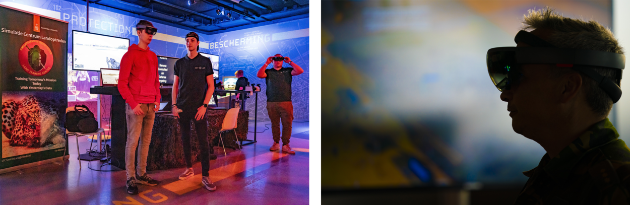 Je ziet je maat naast je lopen. Hoort hem zelfs naast je praten. Maar in het echt is hij er niet. Je ziet hem namelijk door de hololens van het Simulatie Centrum Land Optreden, gemaakt door het Nederlands Lucht- en Ruimtevaartcentrum. “Een serious game, gekoppeld aan een device. Het resultaat is een virtual battle space. Met de hololens kun je door de ‘gewone’ wereld lopen, met een hologram van iemand die er alleen virtueel bij is”, zegt kapitein Ewout van Dort, stafofficier Research & Development (R&D).