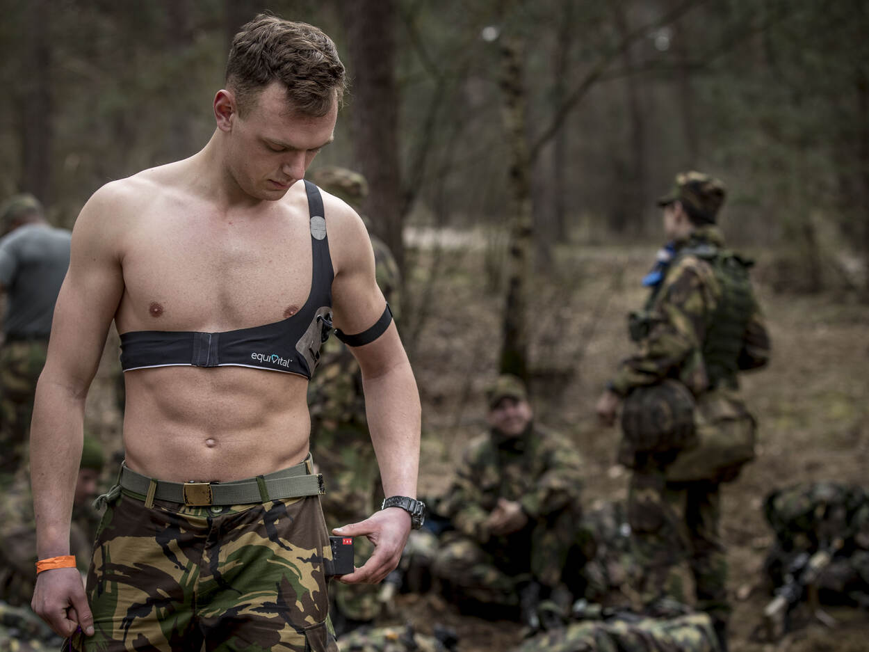 “De meetapparatuur voel ik tijdens het lopen nauwelijks”, aldus soldaat-1 Alex, een van de proefkonijnen in Ermelo. “Ik heb er geen last van. Sowieso vind ik het mooi hieraan mee te werken. Als dit een rol kan spelen om in de toekomst hitteletsel te voorkomen, is dat prachtig.”