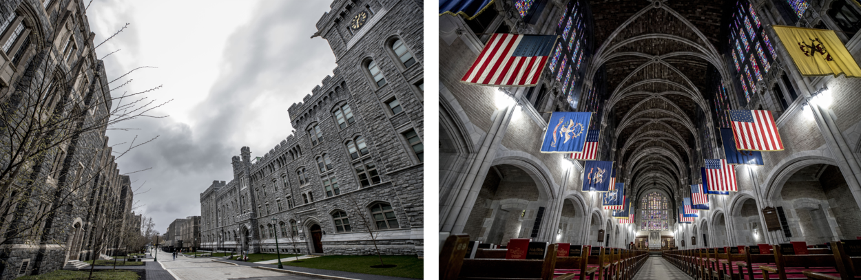 Puntgevels, ornamenten, glas in lood en fraai uit steen opgetrokken beeldhouwwerk. Het lijkt een filmset. Een combinatie van Hogwarts uit Harry Potter en The Red Keep uit Game of Thrones. Vanuit welke hoek je ook kijkt, The United States Military Academy in West Point is uniek. Net zo bijzonder als cadet Tom Jansen (23), die hier eind deze maand als eerste Nederlander afstudeert.