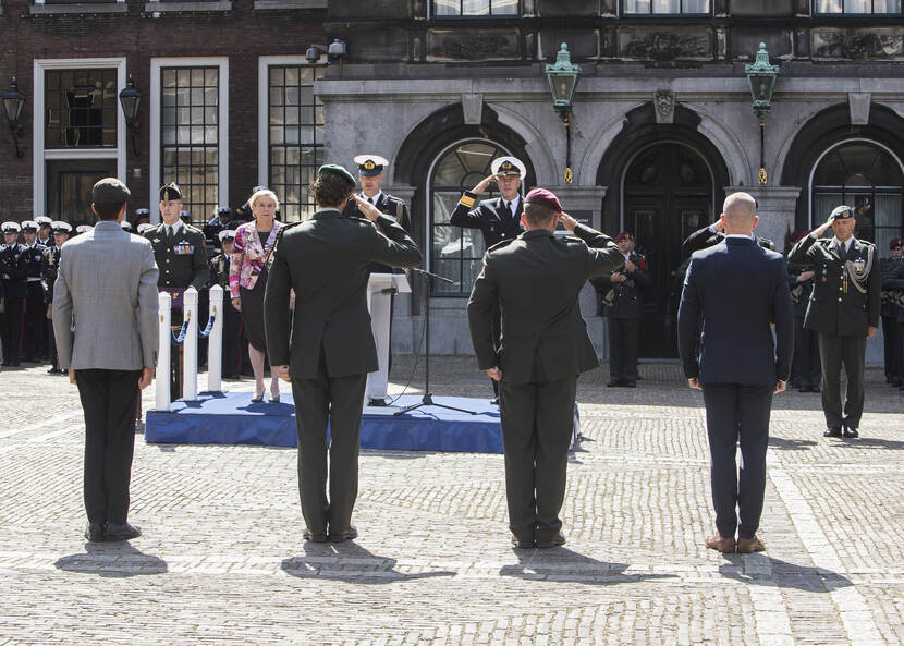 “De daden van deze mannen waren tekenend voor de afloop van enkele uitzonderlijke momenten in de geschiedenis van onze krijgsmacht.” Dat zegt minister Ank Bijleveld over de 3 militairen van de landmacht die op het Haagse Binnenhof een dapperheidsonderscheiding hebben gekregen, het Bronzen Kruis. Een van hen heeft de dienst intussen verlaten. Tijdens dezelfde ceremonie ontvangt een intussen oud-marinier 1 het Kruis van Verdienste. Wie zijn de landmachters? Waarvoor krijgen zij hun onderscheiding?
