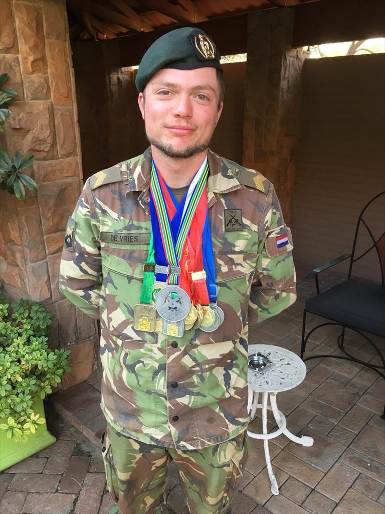 Korporaal Jesse de Vries van 431 Hrstpel verbeterde tijdens de internationale schietwedstrijd South African Combat Rifle Association in Bloemfontein zijn eigen ‘overall record’. Waar hij vorig jaar in Zuid-Afrika al 1.129 punten behaalde, schoot hij deze zomer een puntentotaal van 1.210. Genoeg om niets heel te laten van de concurrentie en de eerste plaats in het eindklassement op te eisen.