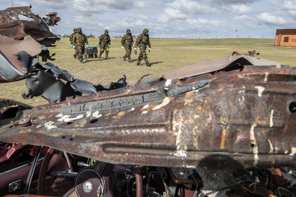 101 CBRN Verdedigingscompagnie oefende samen met CBRN-experts van de EODD. In een van de scenario’s troffen zij een zelf-gefabriceerd sproeivliegtuig aan. Tussen de chemische lading lag een bom. Bekijk in deze video hoe zij te werk gingen.