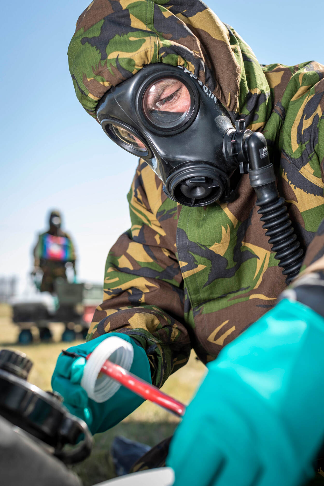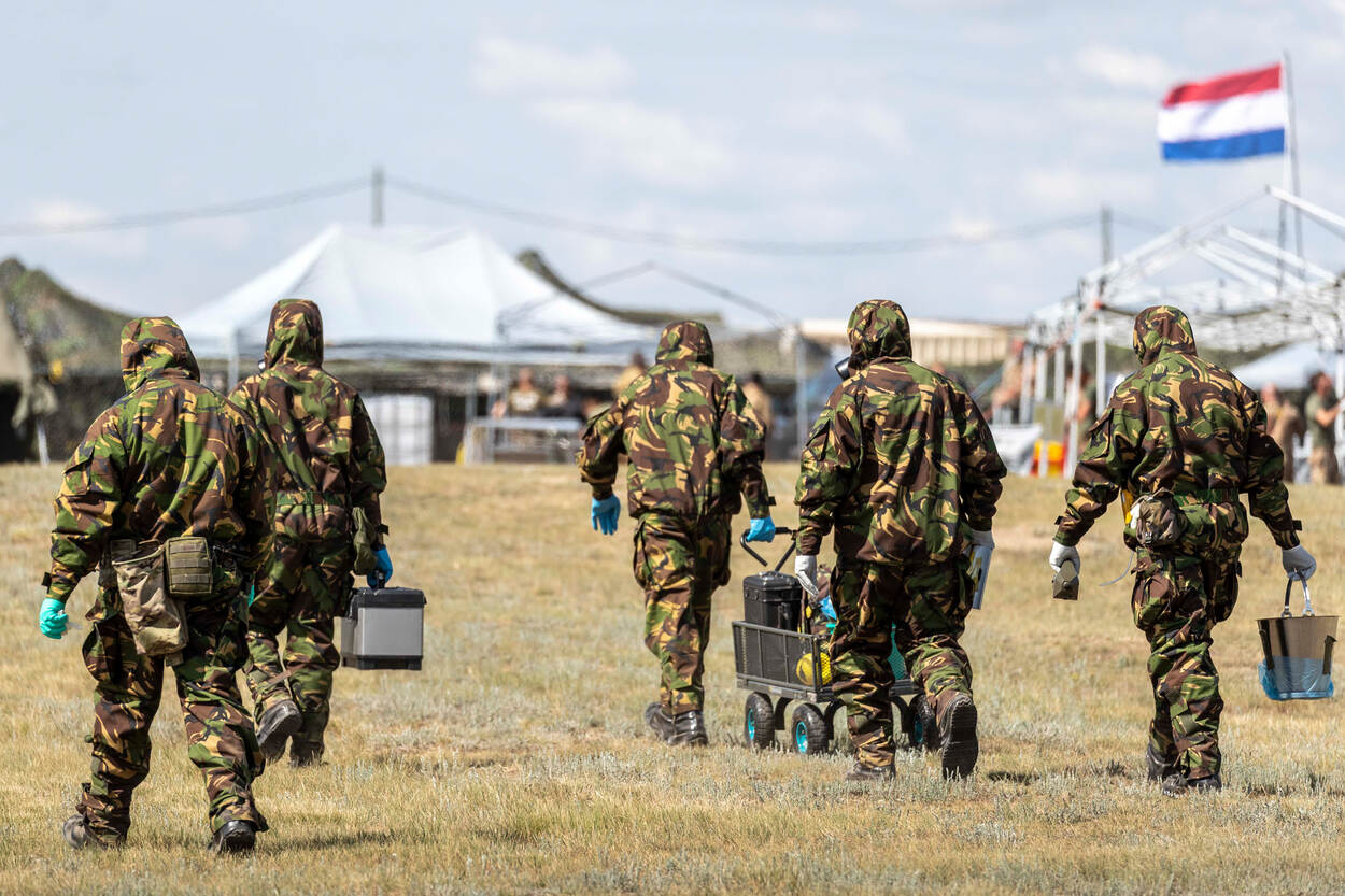 Qua DIM-capaciteit (detectie, identificatie en monitoring) lopen we achter. We zijn bijvoorbeeld niet in staat om ‘biologisch te meten’. We kunnen wel een biologisch besmet gebied betreden en samples nemen, maar we hebben geen laboratorium om de monsters te analyseren. Kijk je naar Duitsland, dan zie je dat ze overal ter wereld een lab kunnen opzetten. Essentieel, want een sample van een biologisch middel kun je niet even per vliegtuig naar TNO sturen voor analyse. Ook tussen de CBRN-pakken zitten verschillen. Zo bestaat het pak van de Duitsers uit 1 stuk met een rits: veel handiger in de ontsmettingsstraat. En het is ook een stuk dunner dan dat van ons.