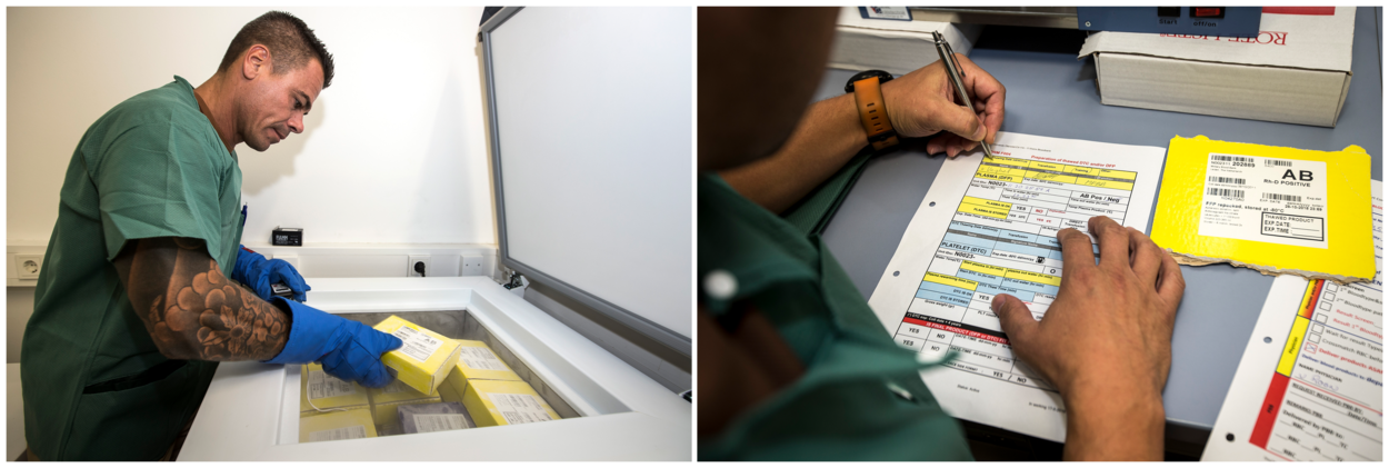 In Scandinavië, en vooral Noorwegen, zijn ze heel ver in het opnieuw kijken naar hoe om te gaan met bloedproducten. Het is niet meer vanzelfsprekend om (net als bijvoorbeeld in WOII) plasma toegediend te krijgen op het gevechtsveld. Het Nederlandse systeem zorgt ervoor dat Nederlandse militairen alleen maar bloedproducten krijgen in een ‘veilige’ omgeving zoals een Role 2. Studies tonen echter aan dat de overlevingskans bij verbloeding vele malen groter is als je bloed toedient in plaats van water met zoutoplossing (zoals Nederlandse militairen nu doen). In Scandinavië loopt een project waar SF-ers bloedtransfusies aan elkaar geven, en daarnaast zelfs bloedproducten mogen meenemen tijdens missies. “Die module over bloed zit in de opleiding die onze mensen volgen”, vertelt Luc. “En nu zijn we samen met de Defensie Gezondheidszorg Organisatie (DGO) en de Militaire Bloedbank een werkgroep gestart die hier een advies over gaat geven, in de hoop dat we het geleerde ook in praktijk brengen.”