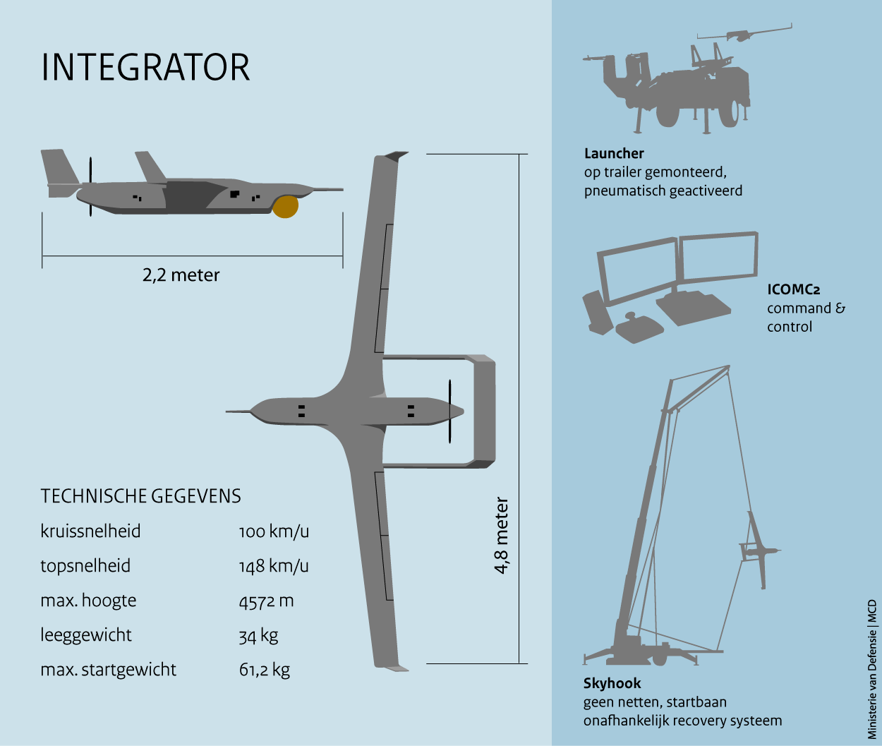 Zoals gezegd vervangt de Integrator de ScanEagle. Het takenpakket voor de opvolger blijft echter hetzelfde; inlichtingen verzamelen door het maken van foto’s en video vanaf een vliegend platform. De ScanEagle was op, na jarenlang veelvuldig te zijn ingezet. Hij verwierf binnen Defensie vooral bekendheid vanwege de duizenden vlieguren boven Mali (VN-missie Minusma) en voor de kust van Somalië (NAVO-antipiraterijmissies Ocean Shield en Atalanta). Daarnaast vloog het toestel boven Nederland om politie en justitie te ondersteunen.
